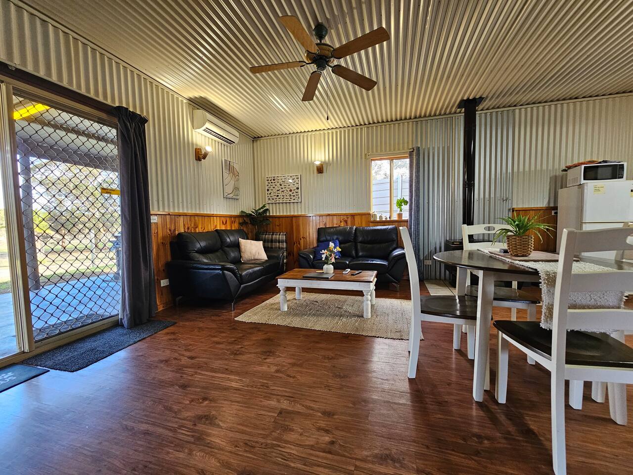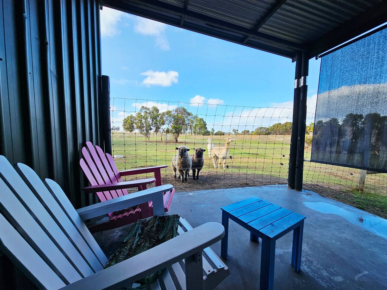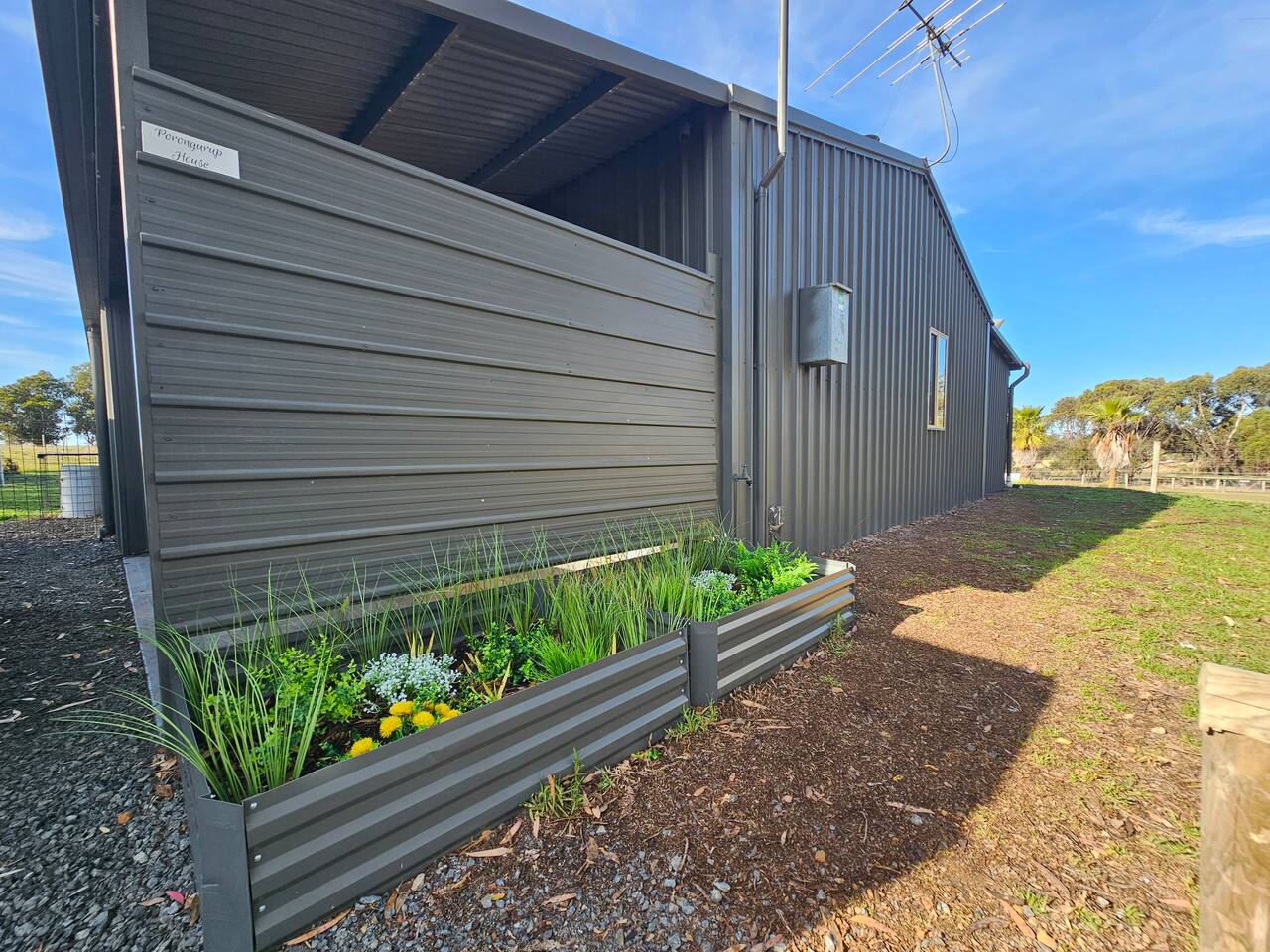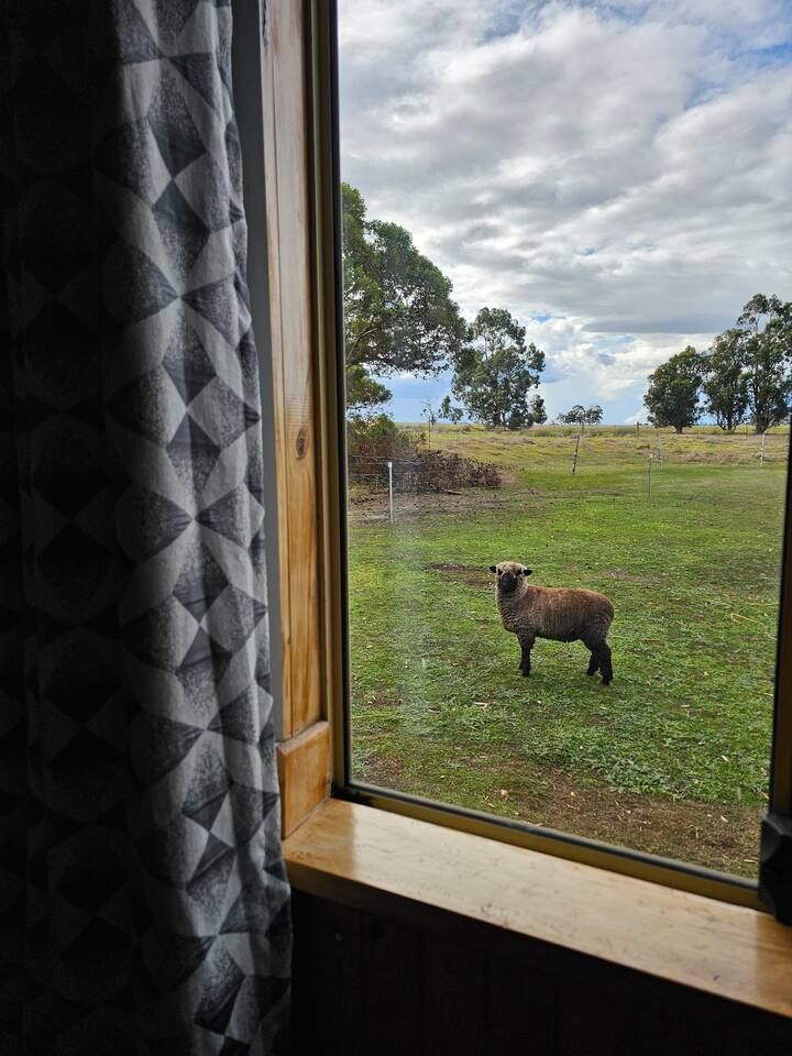 Porongurup House is a cosy, dog-friendly 2BR cottage styled after traditional Aussie farm buildings. Wheelchair accessible with roll-in shower, full kitchen, AC, wood fire & laundry. The fully fenced yard backs onto a paddock with friendly alpacas, sheep & chickens – guests can feed them (feed provided). A relaxing, hands-on farmstay experience with modern comforts and 5-star reviews to match.