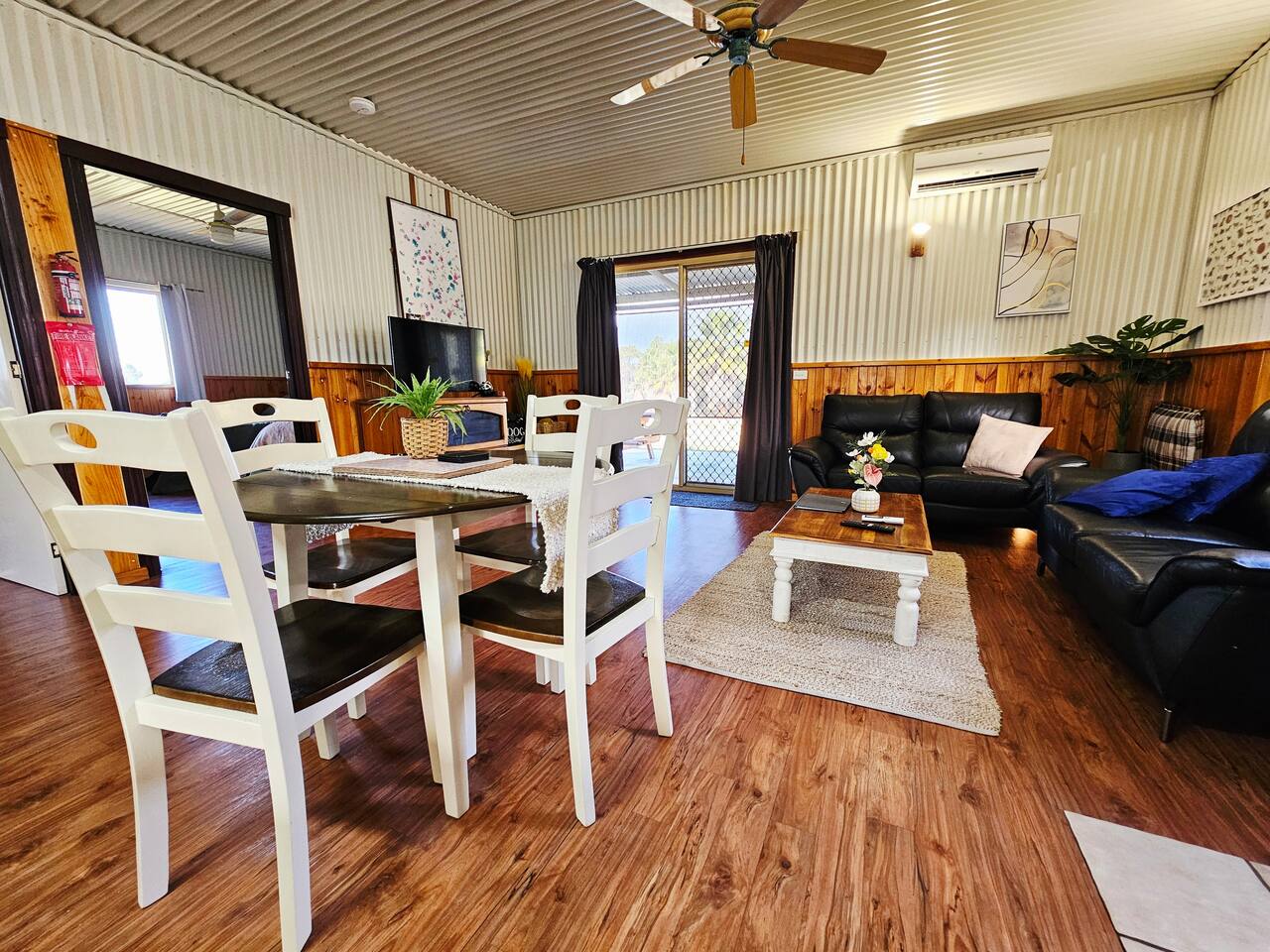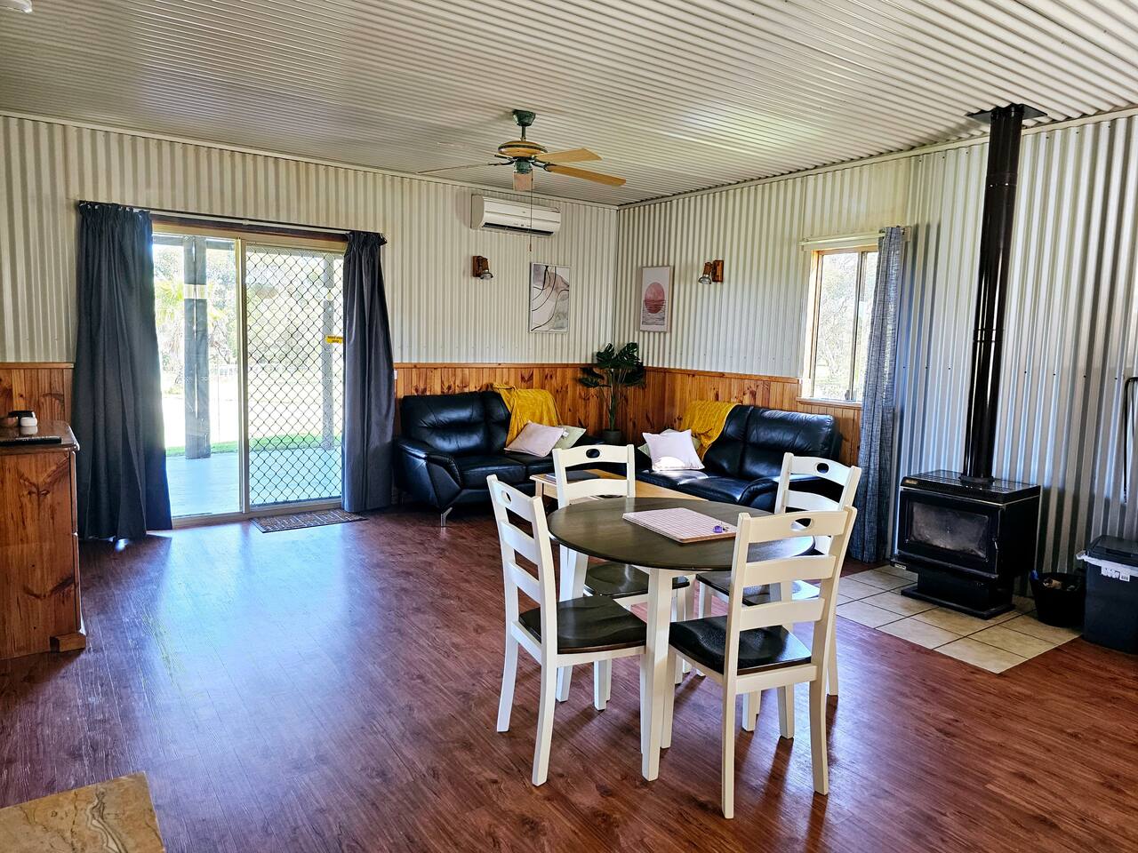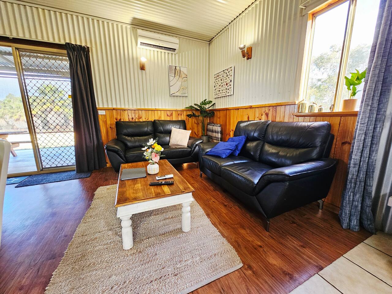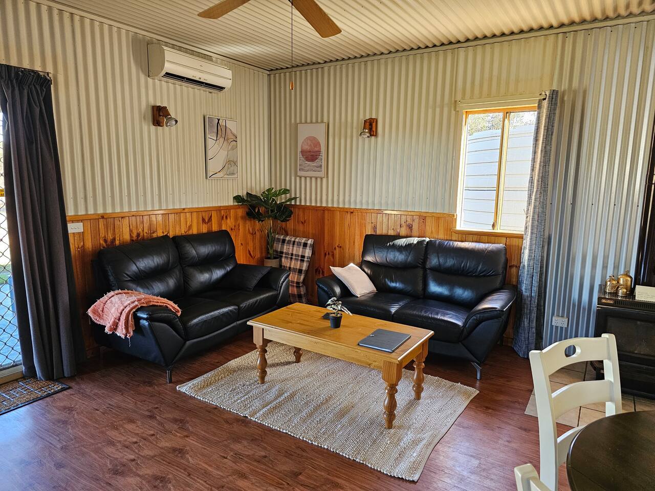 Porongurup House is a cosy, dog-friendly 2BR cottage styled after traditional Aussie farm buildings. Wheelchair accessible with roll-in shower, full kitchen, AC, wood fire & laundry. The fully fenced yard backs onto a paddock with friendly alpacas, sheep & chickens – guests can feed them (feed provided). A relaxing, hands-on farmstay experience with modern comforts and 5-star reviews to match.