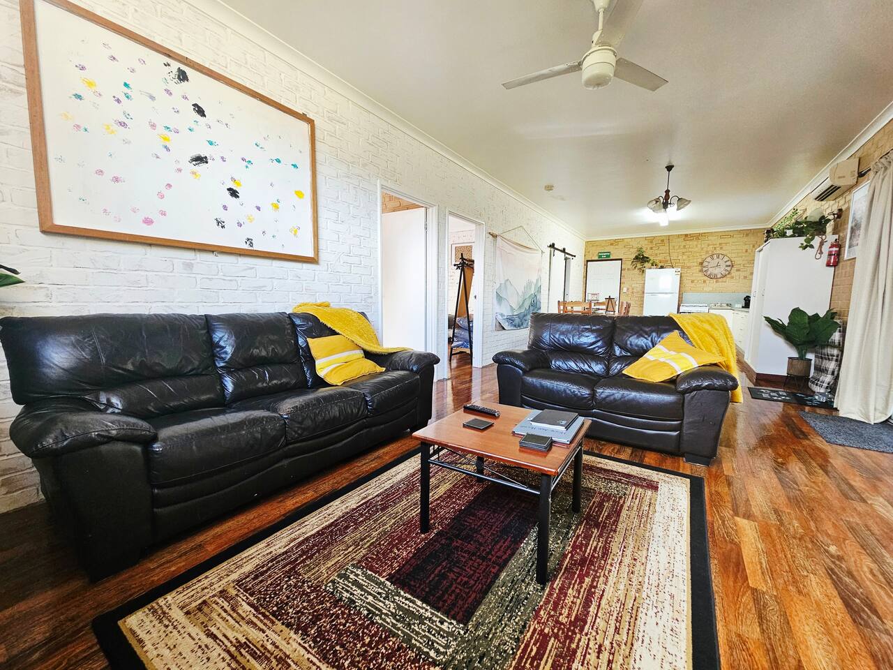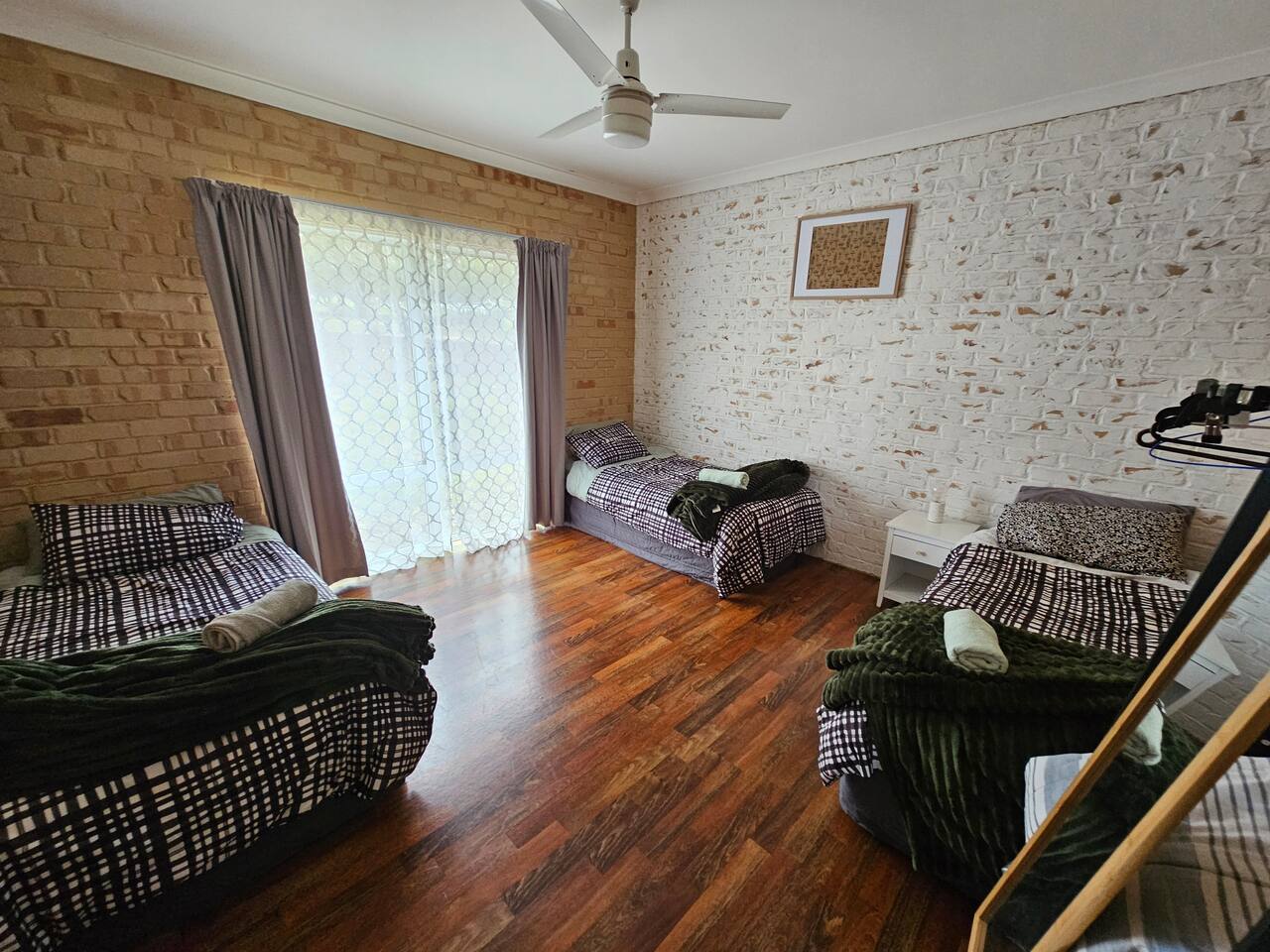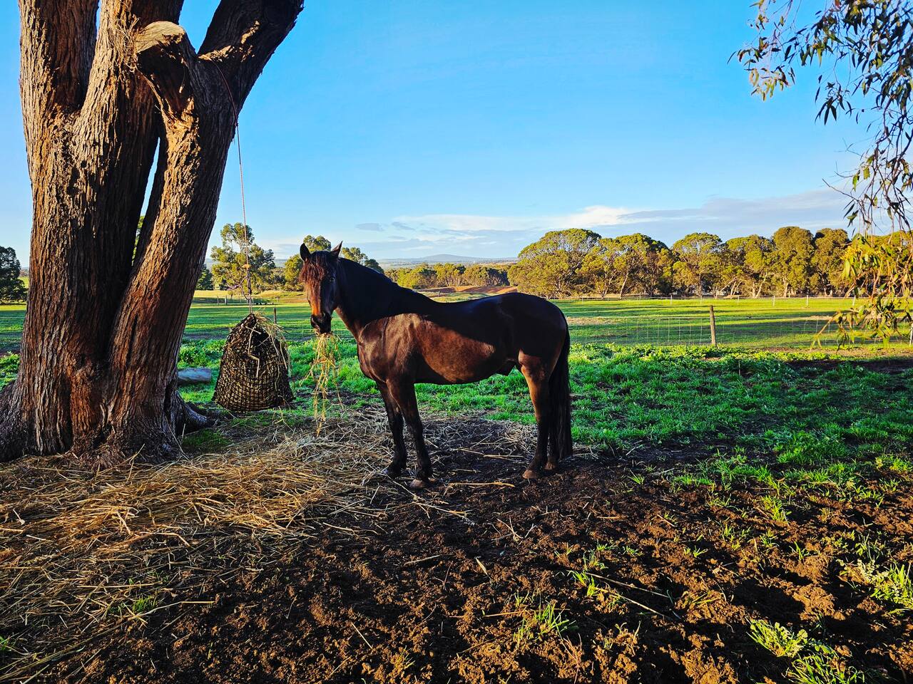 Home & Hound Stirling house is a 117sqm double brick 2 bedroom chalet accomodation. Situated on a small farm with opportunity to hand feed the goats, ponies, collect eggs from the chickens, and generally relax in the quiet countryside. This chalet has a large bedroom with queen bed, and a second large bedroom with 3 single beds. A combined bathroom and laundry with washing machine, and a fully self contained kitchen. Dog friendly with a secure yard so you can leave your pet in for day trips.