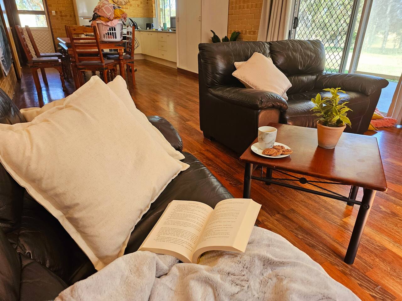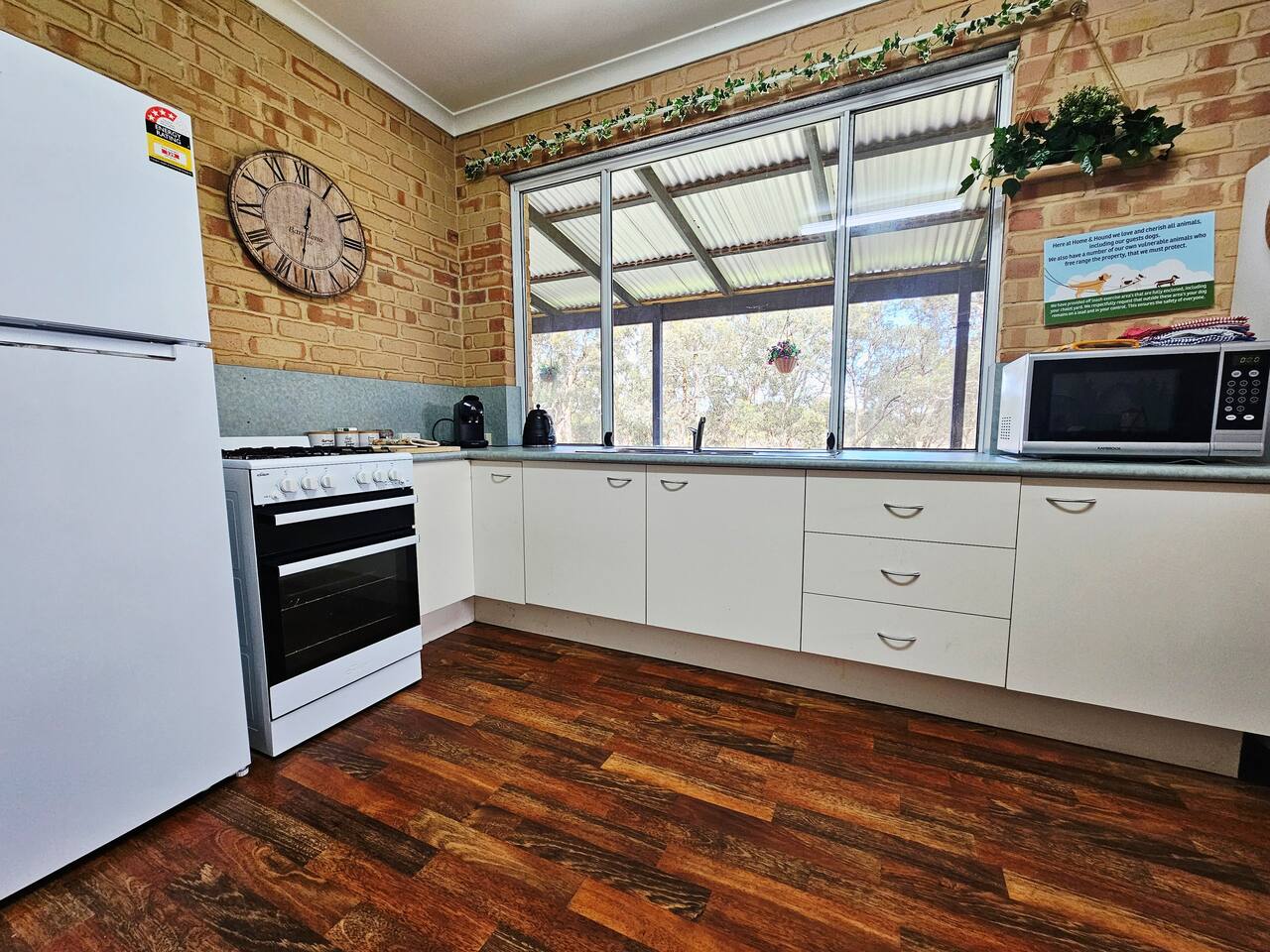 Home and hound is a farmlet situated close to the Stirling Ranges in the Great Southern region of Western Australia. Each chalet is fully fenced and dog friendly, this chalet is 162sqm under roof. There are a number of animals on the farmlet for interacting with, and some designated areas for walking dogs, including the perimeter of a small lake. The property is accessible by all vehicles with only 800m of dirt road to travel off the sealed bitumen roads. All linen is supplied, and the chalets are fully self contained including cleaning products. A very large and well equipped supermarket is 16km away, and there are bottle shops, chemists, hardware and farm equipment stores there too. The owners residence is also on the property, and anything you need can be easily arranged. Its very quiet and peaceful, and be sure to check the view of the stars on a clear night.